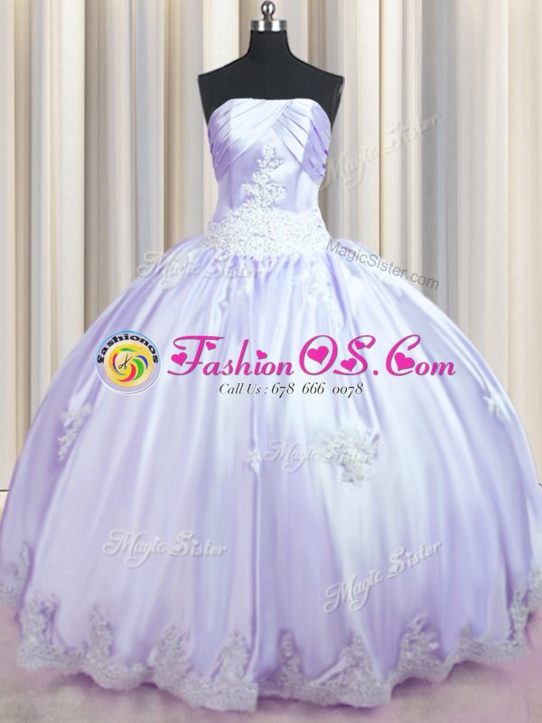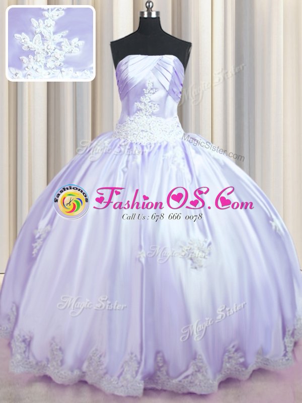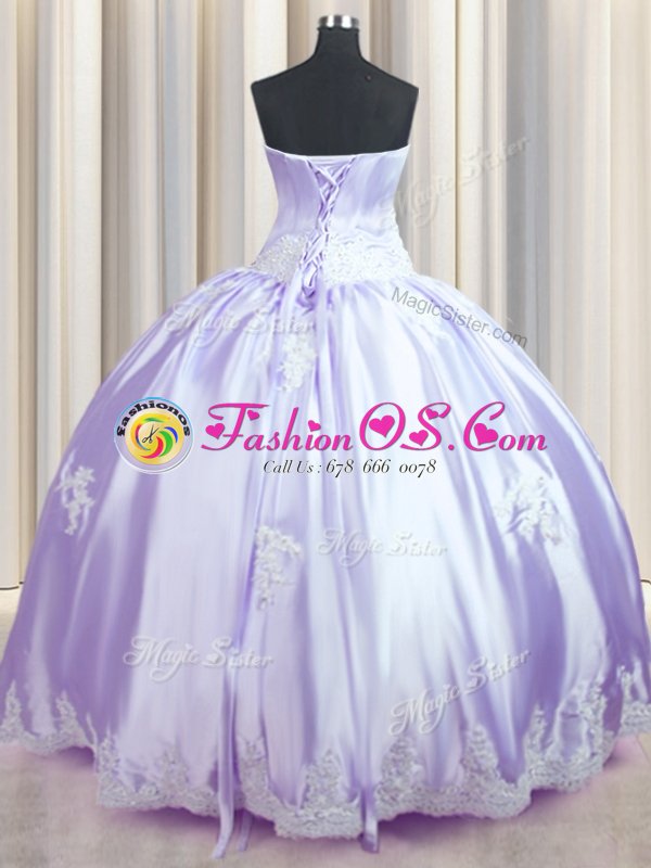 Designer Lavender Lace Up Quinceanera Gown Beading and Appliques Sleeveless Floor Length