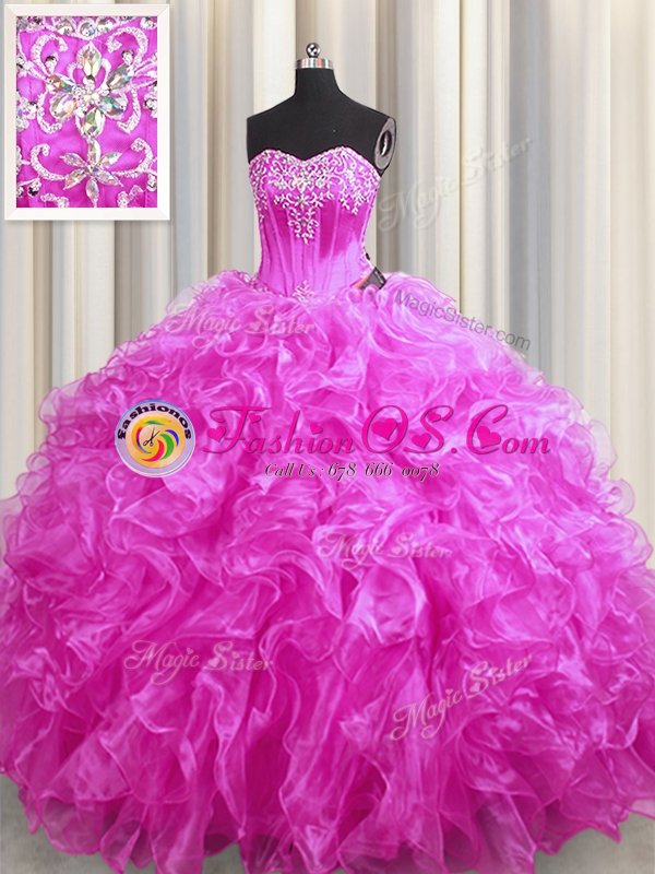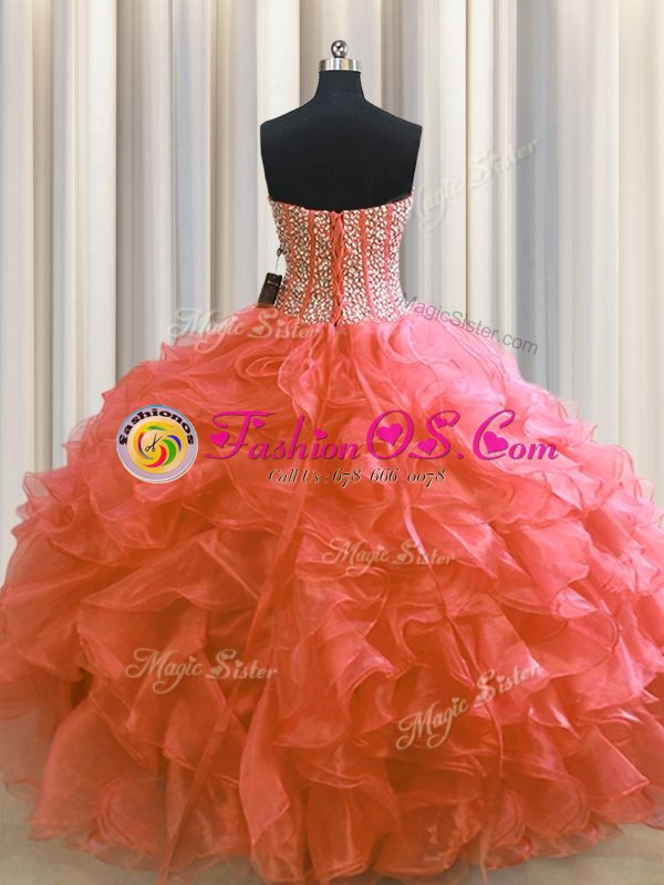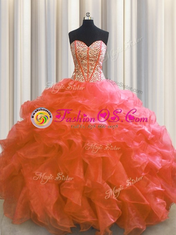Organza Sleeveless Quinceanera Gown Sweep Train and Beading and Ruffles
