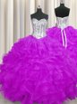 Classical Sleeveless Organza Floor Length Lace Up 15 Quinceanera Dress in Blue And White for with Beading and Ruffles and Ruching