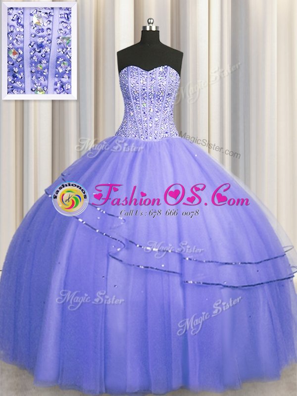 Great Visible Boning Puffy Skirt Floor Length Lace Up Quinceanera Dresses Purple and In for Military Ball and Sweet 16 and Quinceanera with Beading