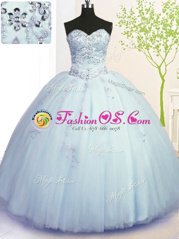 Graceful Ball Gowns 15th Birthday Dress Light Blue Sweetheart Tulle Sleeveless Floor Length Lace Up
