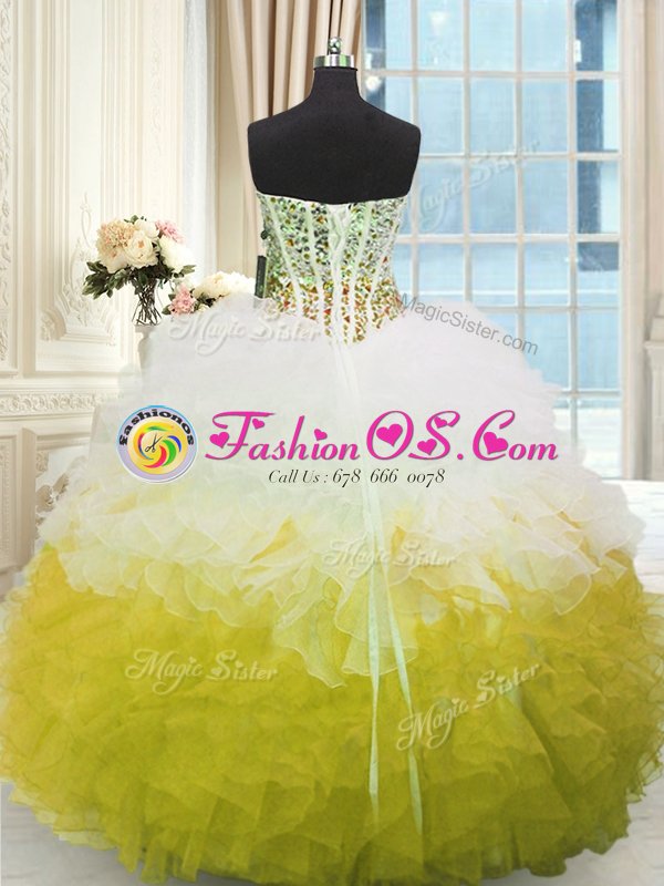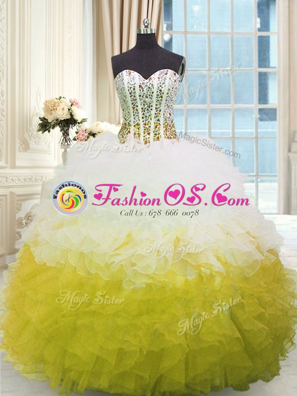 Fuchsia 15 Quinceanera Dress Organza Brush Train Sleeveless Beading and Ruffles