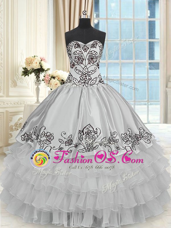 Popular Floor Length Lace Up Sweet 16 Dresses Blue and In for Military Ball and Sweet 16 and Quinceanera with Pick Ups and Hand Made Flower