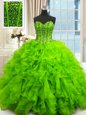 Yellow Green Strapless Lace Up Beading and Ruffles Vestidos de Quinceanera Sleeveless