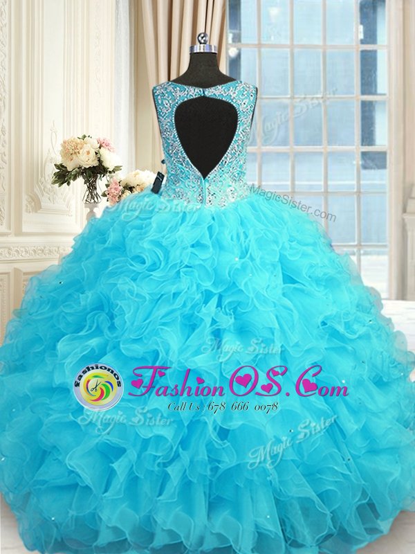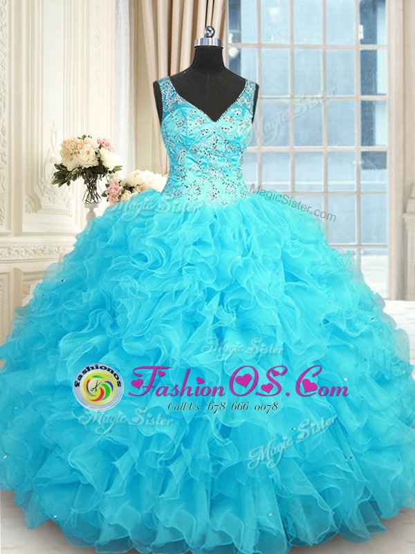 Floor Length Baby Blue Quinceanera Gowns V-neck Sleeveless Zipper