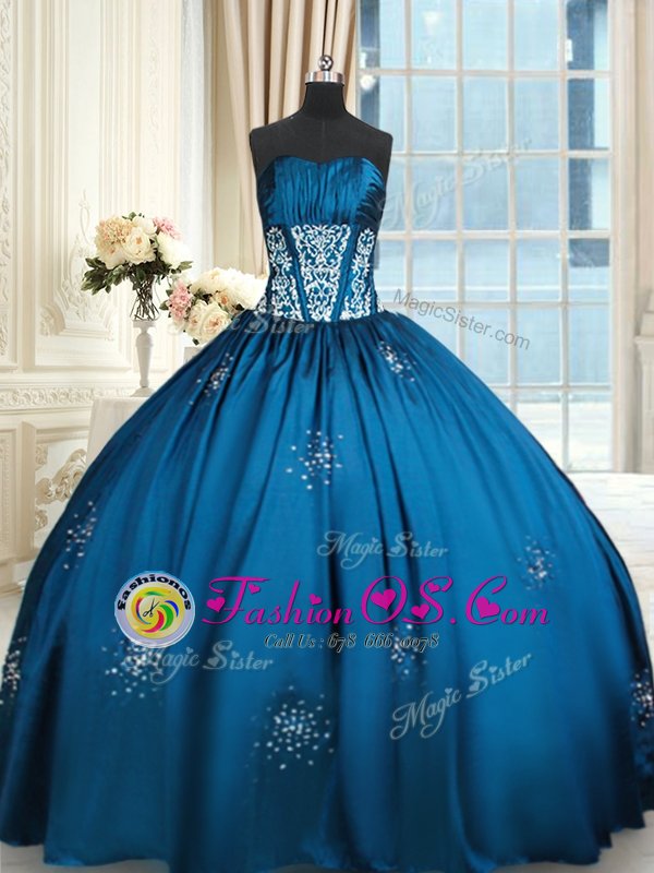 Sexy Blue and Teal Vestidos de Quinceanera Military Ball and Sweet 16 and Quinceanera and For with Beading and Appliques and Ruching Strapless Sleeveless Lace Up