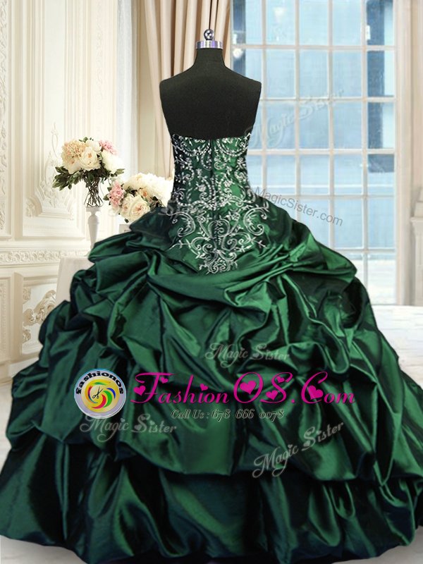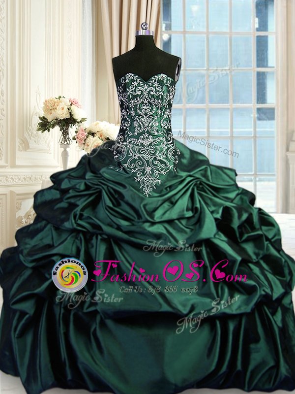Graceful Floor Length Zipper Sweet 16 Quinceanera Dress Dark Green and In for Military Ball and Sweet 16 and Quinceanera with Beading and Embroidery and Pick Ups