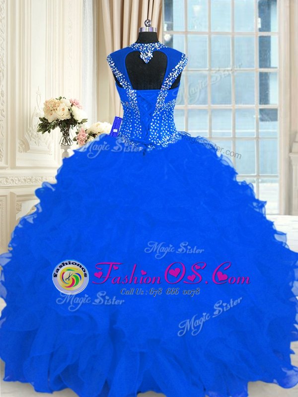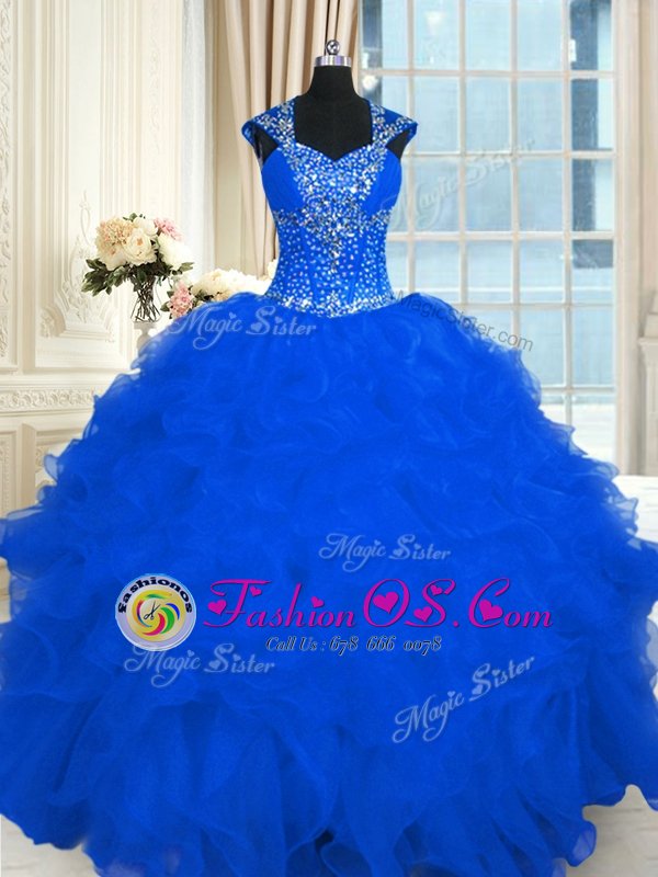 Hot Selling Cap Sleeves Lace Up Floor Length Beading and Ruffles Sweet 16 Quinceanera Dress