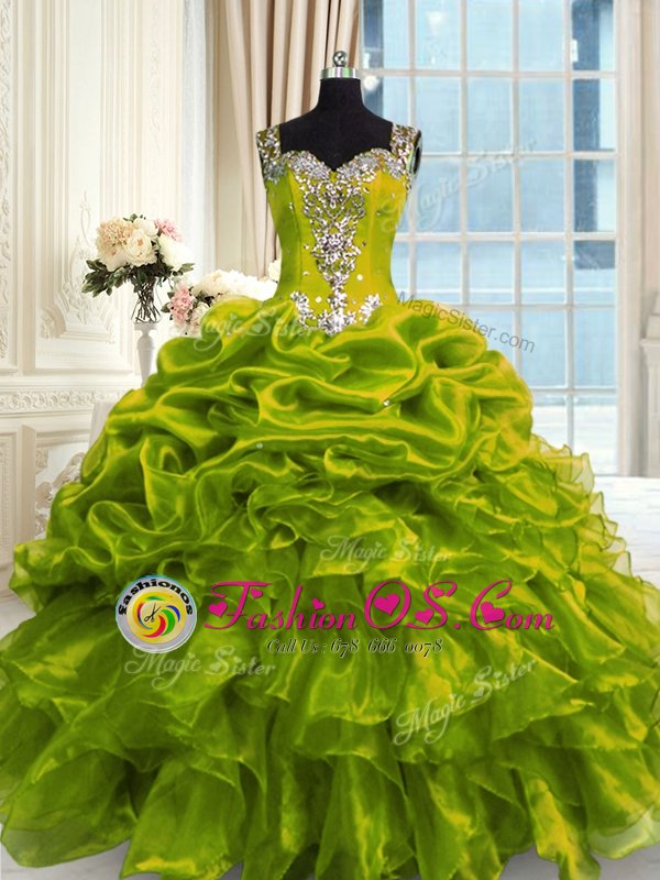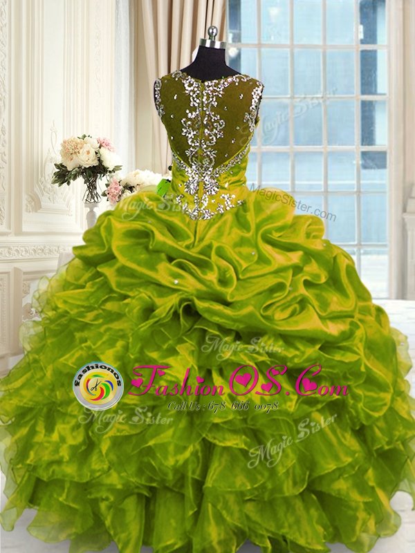 High Quality Floor Length Ball Gowns Sleeveless Olive Green Quinceanera Gown Lace Up