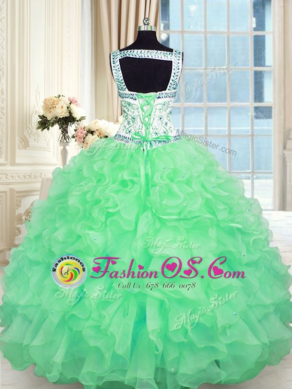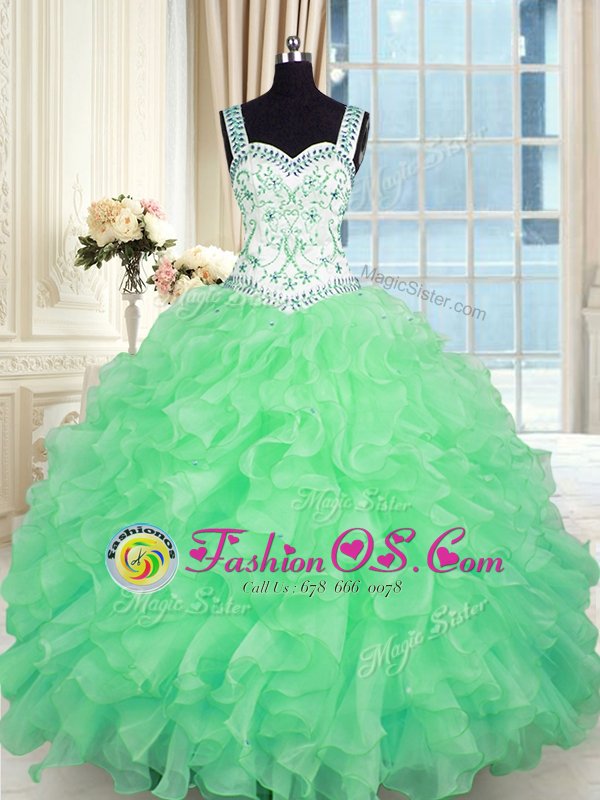 Lace Up Vestidos de Quinceanera Beading and Appliques and Ruffles Sleeveless Floor Length