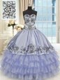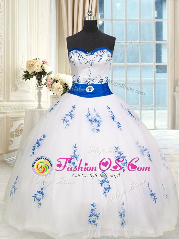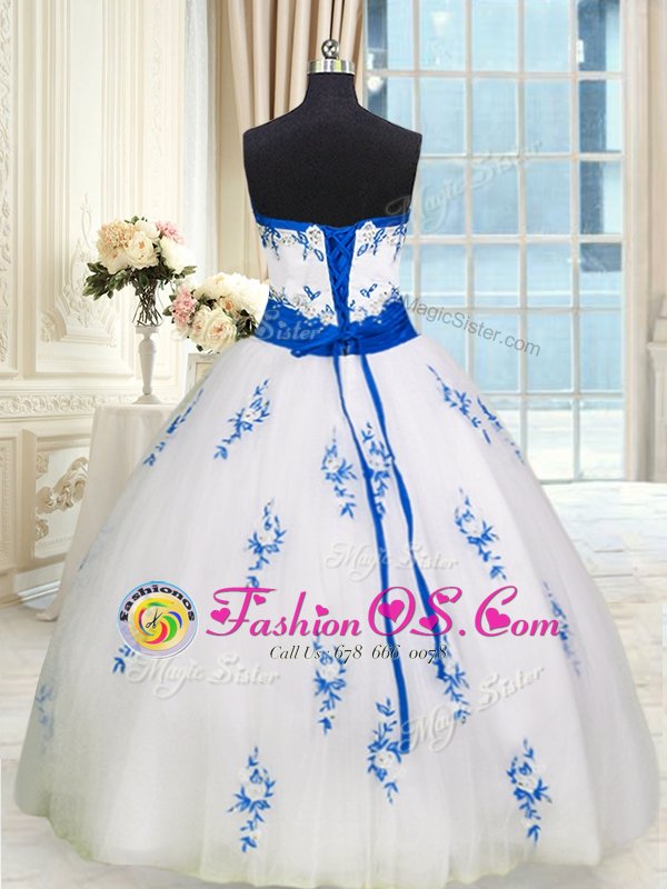 Decent White Lace Up Sweet 16 Dresses Appliques and Belt Sleeveless Floor Length