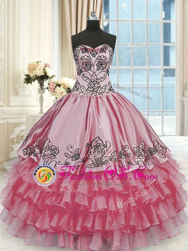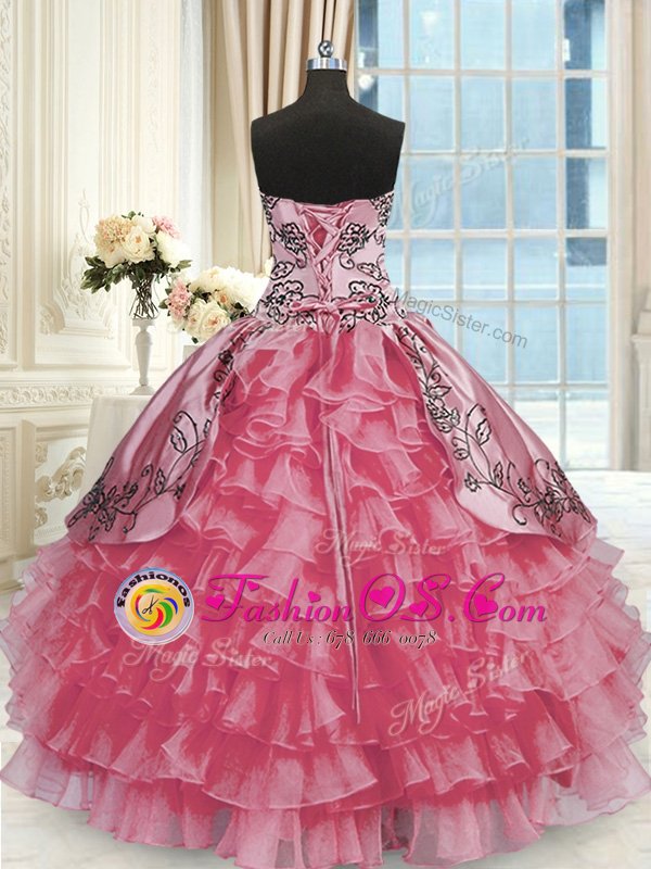 Discount Organza and Taffeta Sleeveless Floor Length 15 Quinceanera Dress and Beading and Embroidery and Ruffled Layers