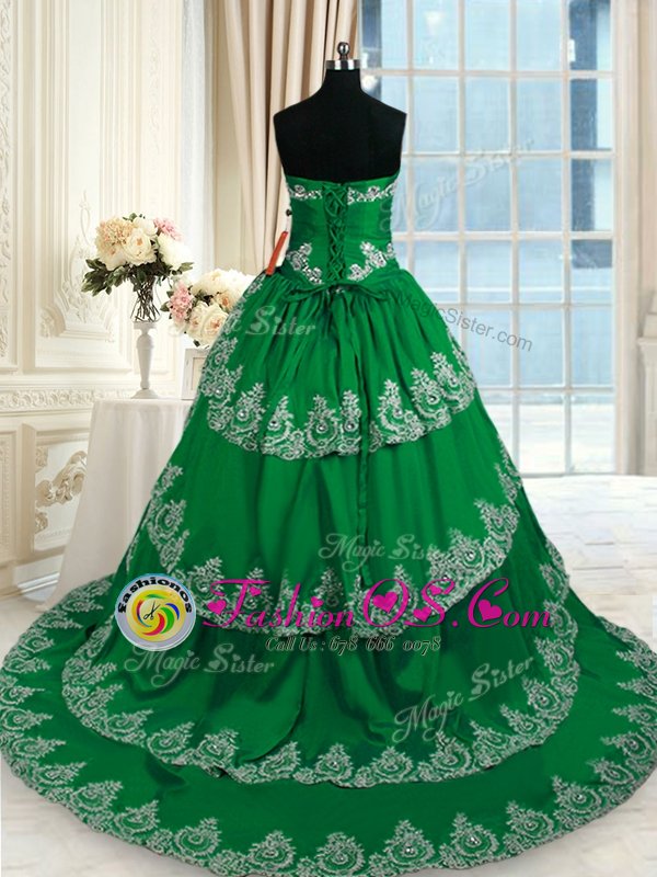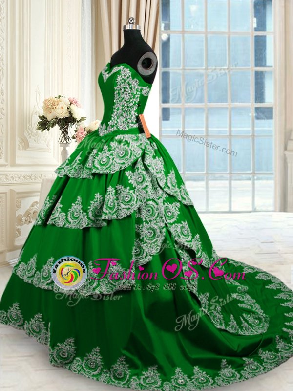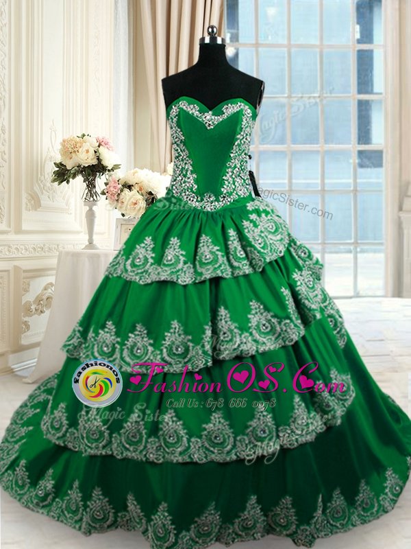 Dark Green Sweetheart Lace Up Beading and Appliques and Ruffled Layers Sweet 16 Dresses Court Train Sleeveless