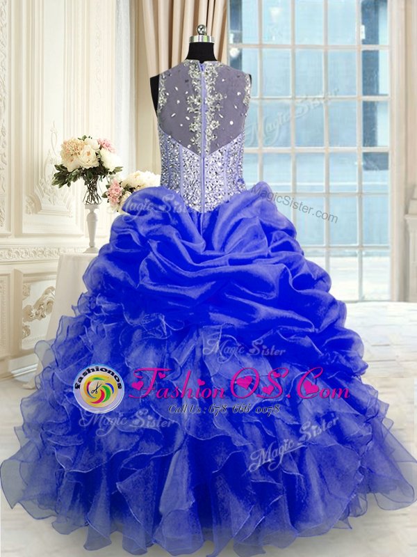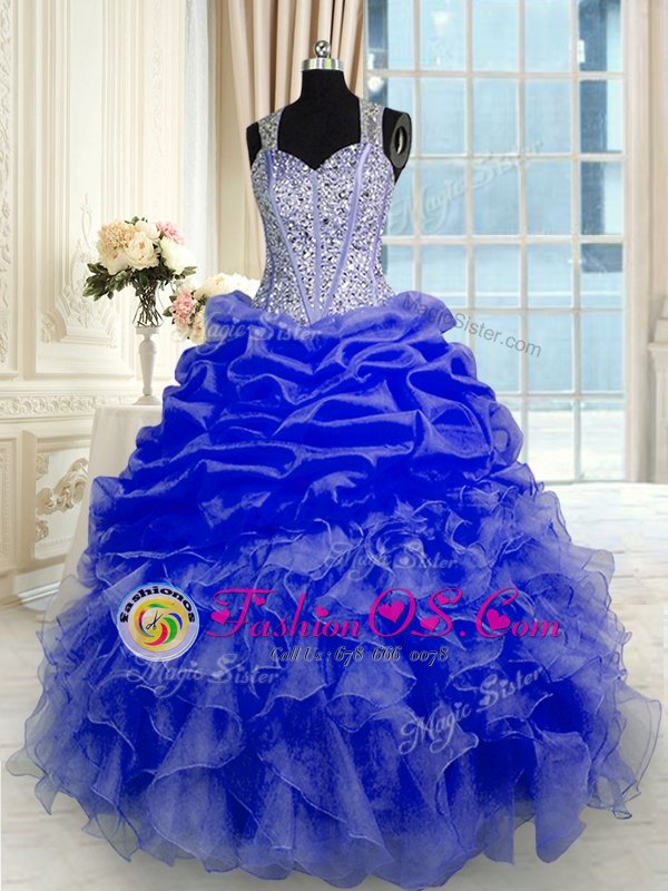 High Quality Blue Sleeveless Beading and Ruffles Floor Length Quinceanera Gowns