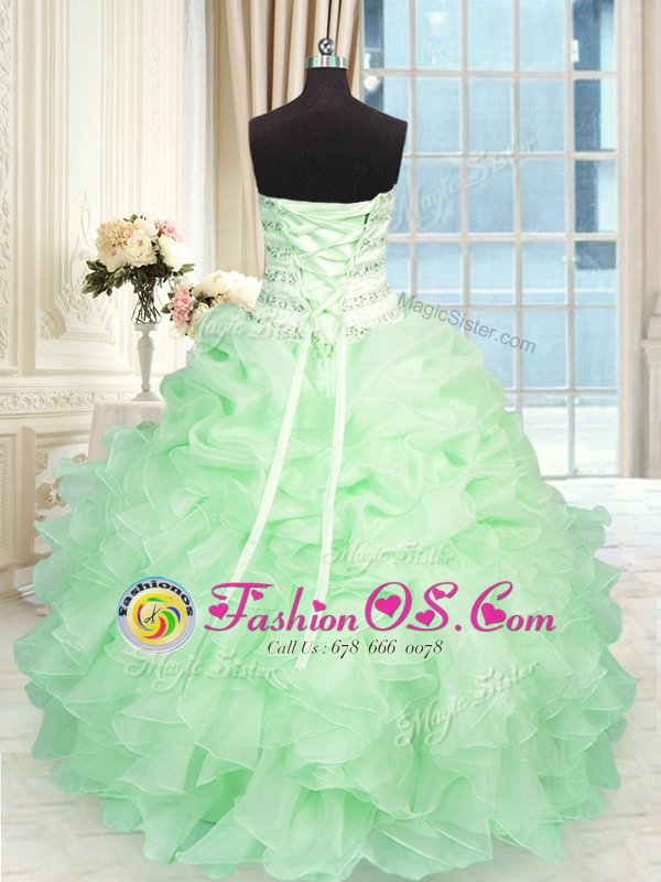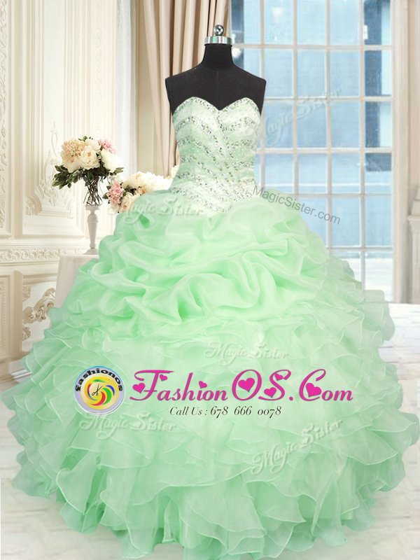 Fabulous Sweetheart Sleeveless Sweet 16 Quinceanera Dress Floor Length Beading and Ruffles Apple Green Organza
