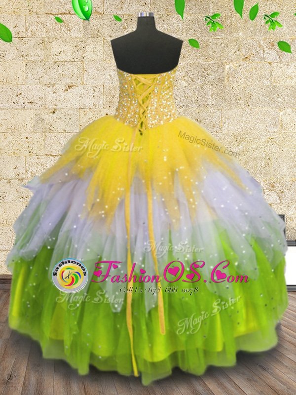 Tulle Sleeveless Floor Length Sweet 16 Dress and Beading and Ruffles and Sequins