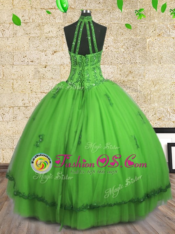 Eye-catching Halter Top Sleeveless Lace Up Sweet 16 Dresses Tulle