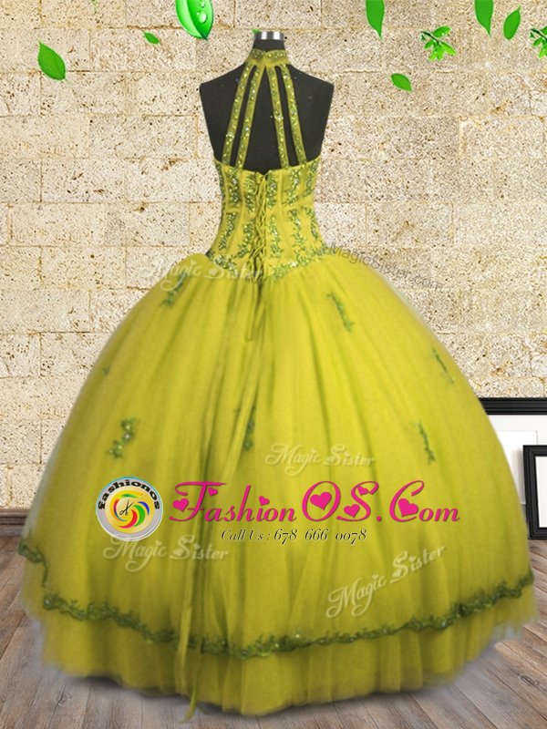 Halter Top Sleeveless Lace Up Floor Length Beading Sweet 16 Dresses