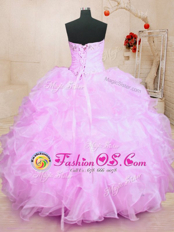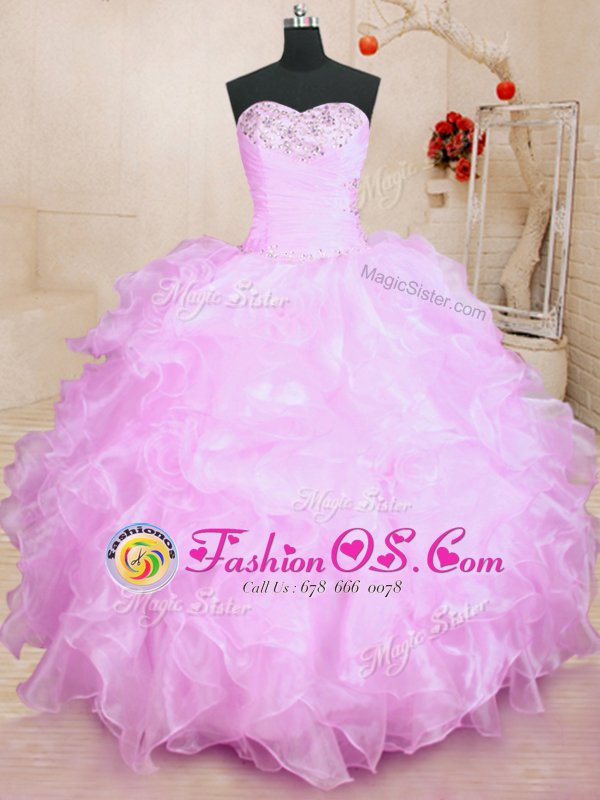 Top Selling Organza Sweetheart Sleeveless Lace Up Beading and Ruffles Quinceanera Dresses in Watermelon Red