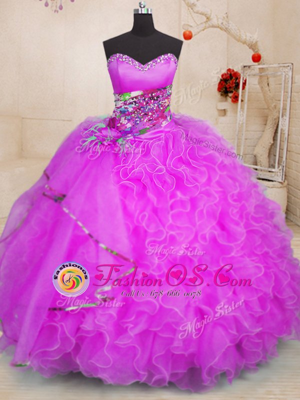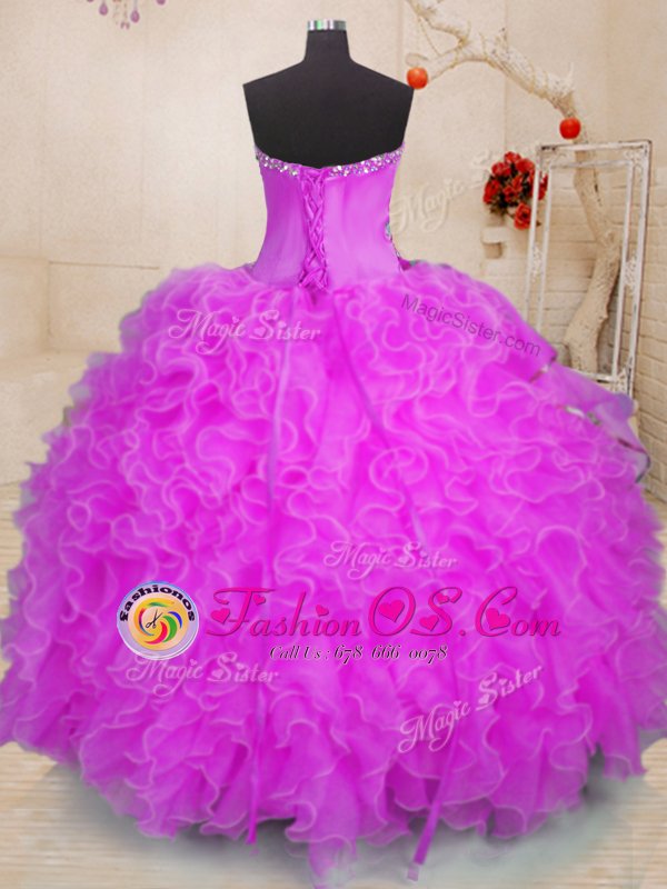 Perfect Fuchsia Lace Up 15 Quinceanera Dress Beading and Ruffles Sleeveless Floor Length