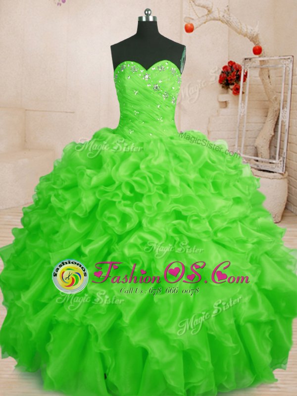 Sleeveless Beading and Ruffles Floor Length Quinceanera Dress