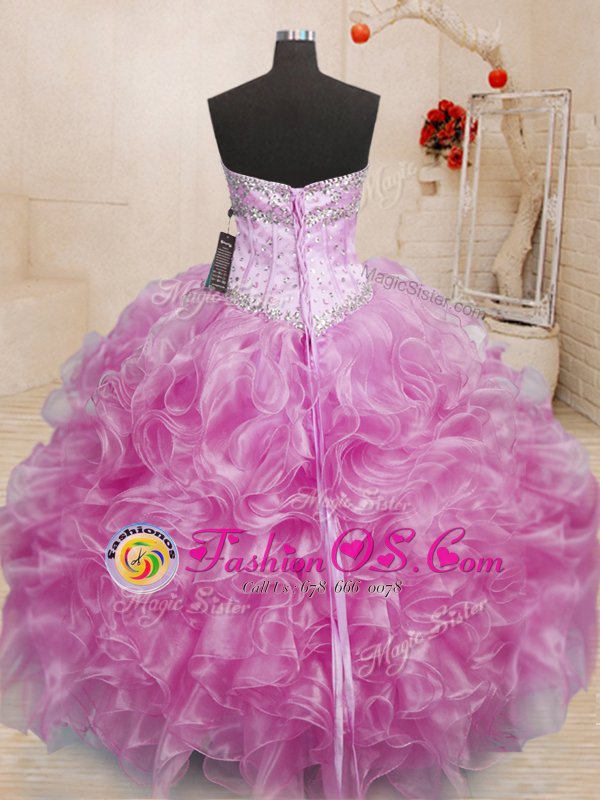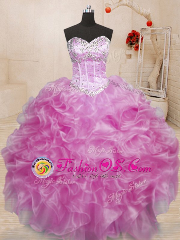 Light Blue Sleeveless Floor Length Beading and Ruffles and Pick Ups Zipper Sweet 16 Quinceanera Dress
