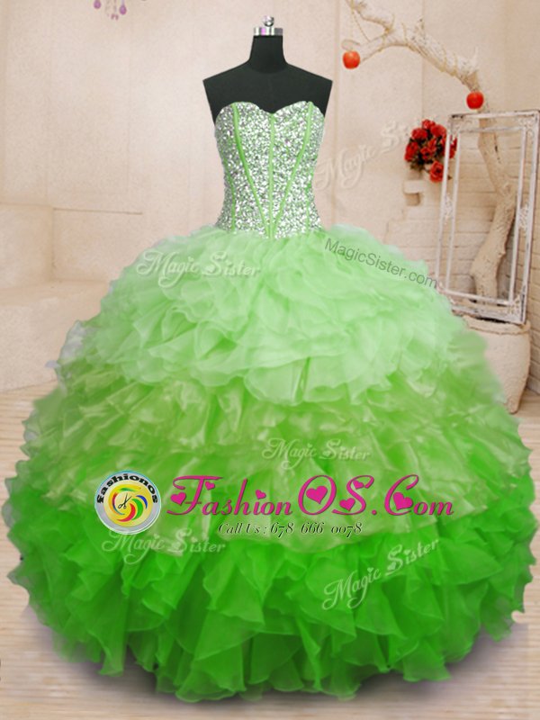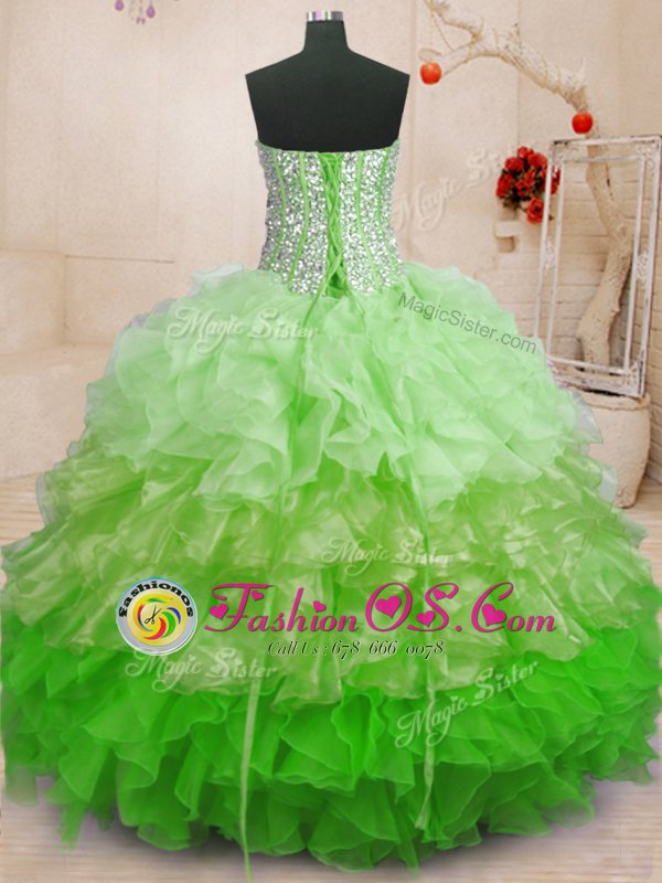 Top Selling Sleeveless Organza Floor Length Lace Up Sweet 16 Quinceanera Dress in Multi-color for with Beading and Ruffles