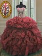 Custom Made Blue Organza Lace Up 15th Birthday Dress Sleeveless Floor Length Beading and Ruffles and Hand Made Flower