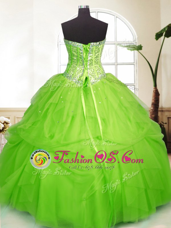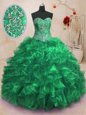 Delicate Rose Pink Sleeveless Organza Brush Train Lace Up Sweet 16 Dress for Military Ball and Sweet 16 and Quinceanera