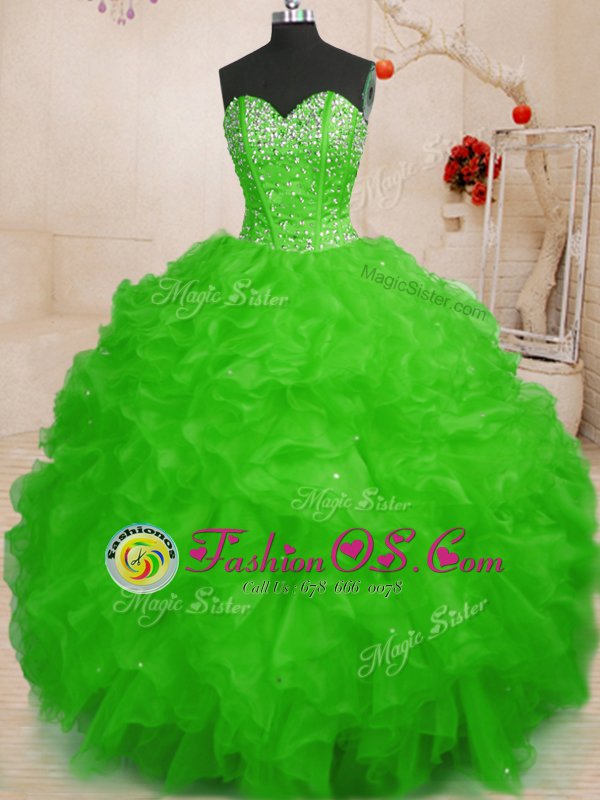 Admirable Lace Up Quinceanera Dress Beading and Ruffles Sleeveless Floor Length