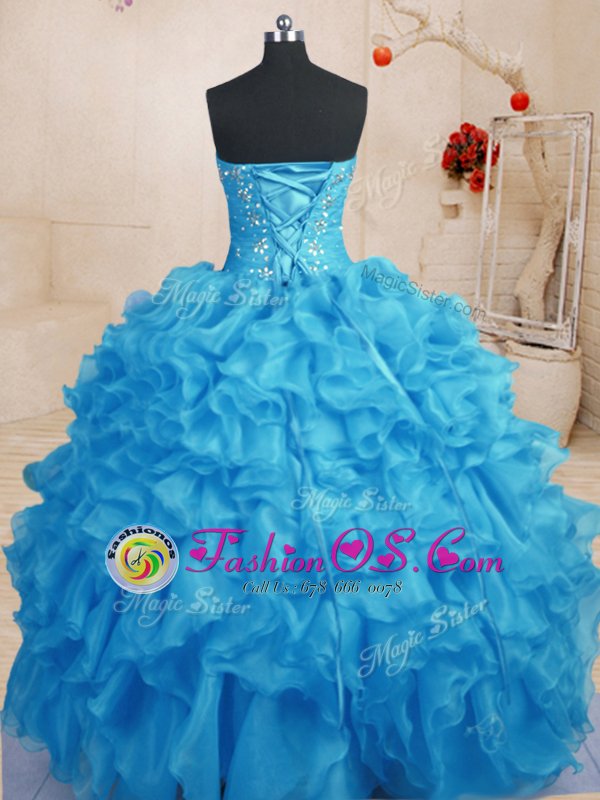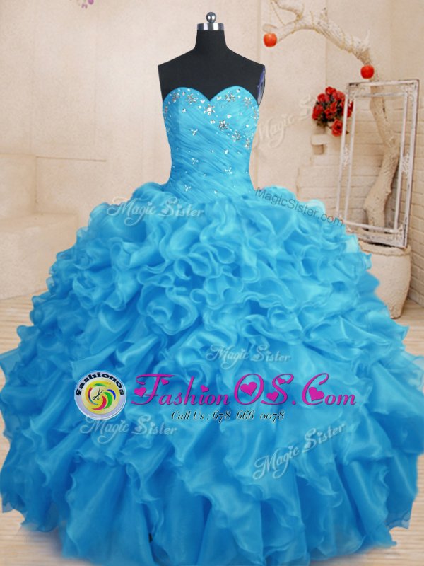 Clearance Organza Sweetheart Sleeveless Lace Up Beading and Ruffles Sweet 16 Dresses in Baby Blue