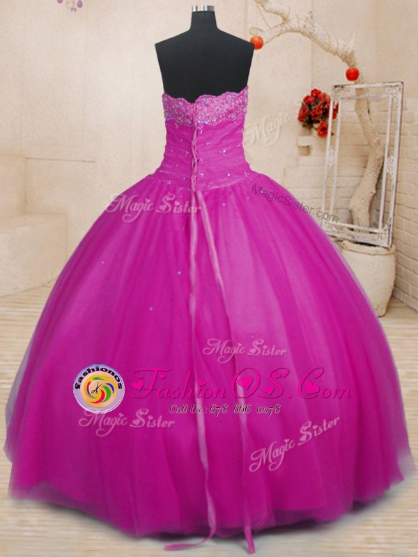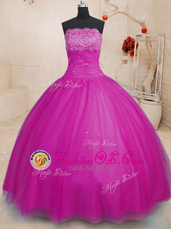 Affordable Floor Length Fuchsia Sweet 16 Quinceanera Dress Tulle Sleeveless Beading