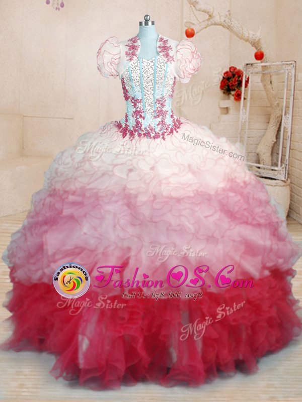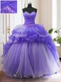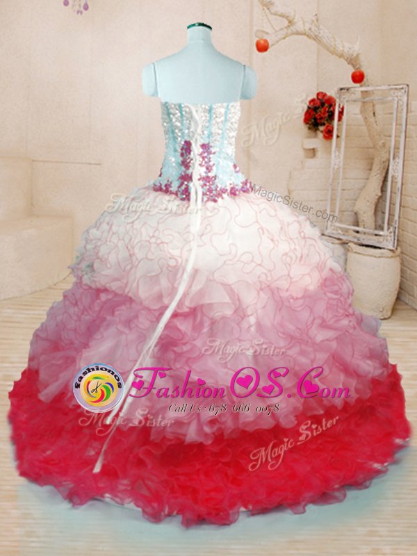 Sweetheart Sleeveless Organza Vestidos de Quinceanera Beading and Appliques and Ruffles Brush Train Lace Up