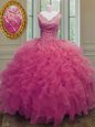 Multi-color Lace Up Quinceanera Dresses Beading and Appliques and Ruffles Sleeveless With Train