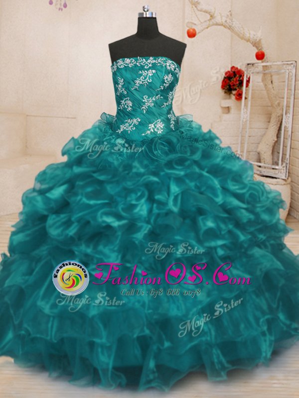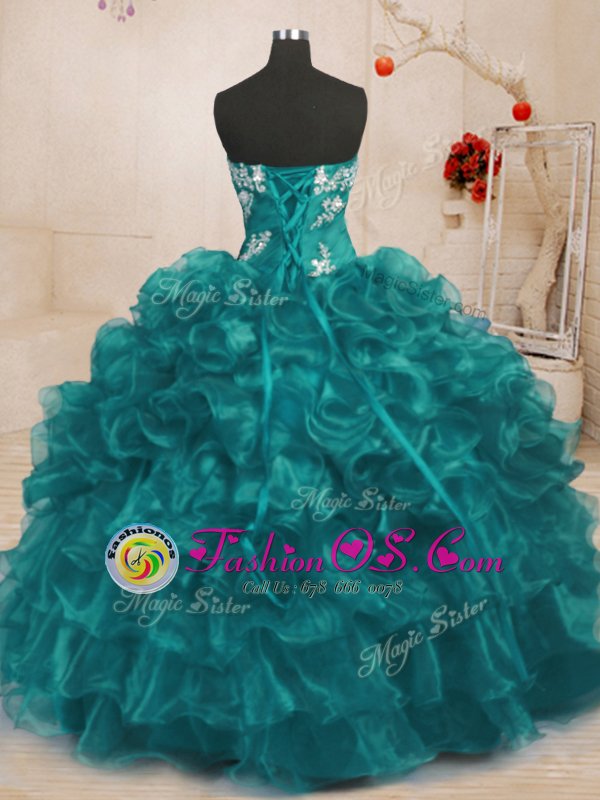 Smart Turquoise Sleeveless Organza Lace Up Quinceanera Gown for Military Ball and Sweet 16 and Quinceanera