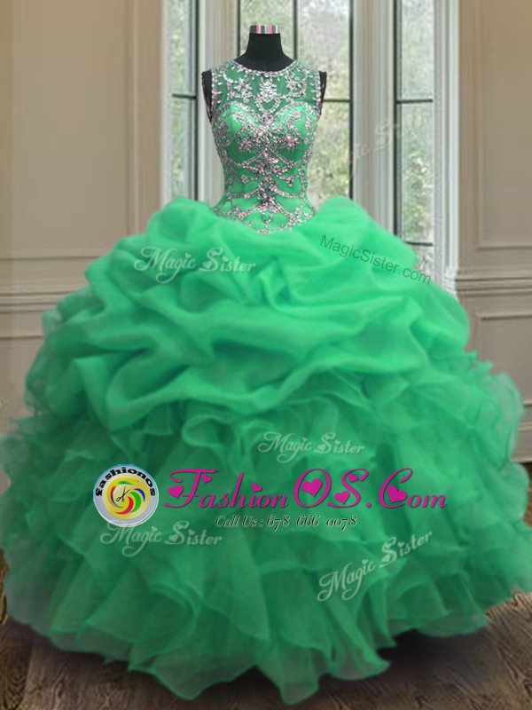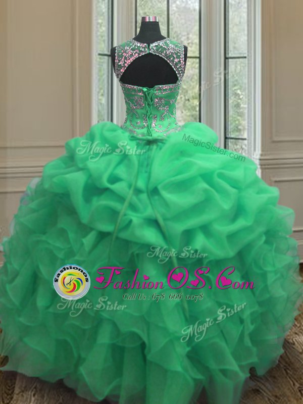 Super Turquoise Tulle Lace Up Scoop Sleeveless Floor Length Quinceanera Dress Beading and Ruffles