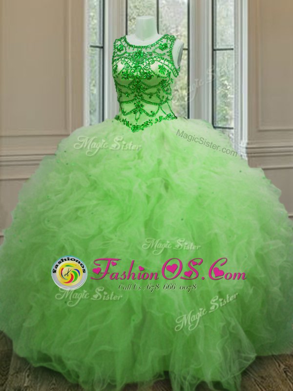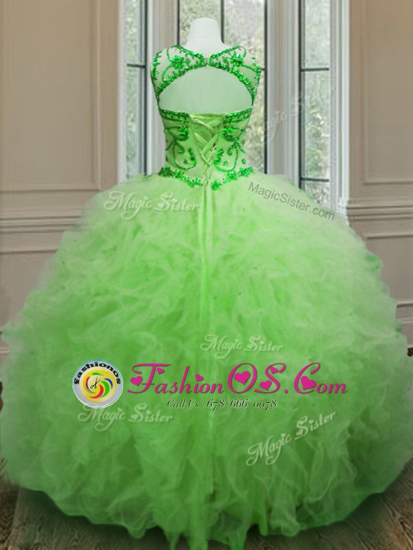 Scoop Sleeveless Tulle Lace Up Quinceanera Gown for Military Ball and Sweet 16 and Quinceanera