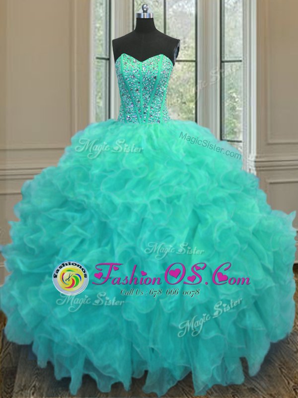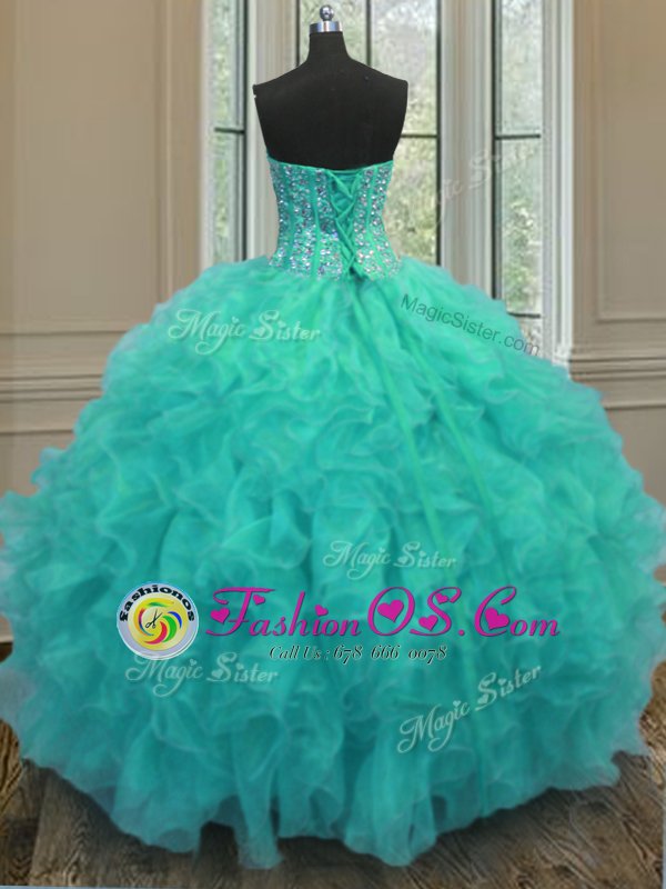 Admirable Aqua Blue Sweetheart Neckline Beading and Ruffled Layers and Pick Ups Ball Gown Prom Dress Sleeveless Lace Up