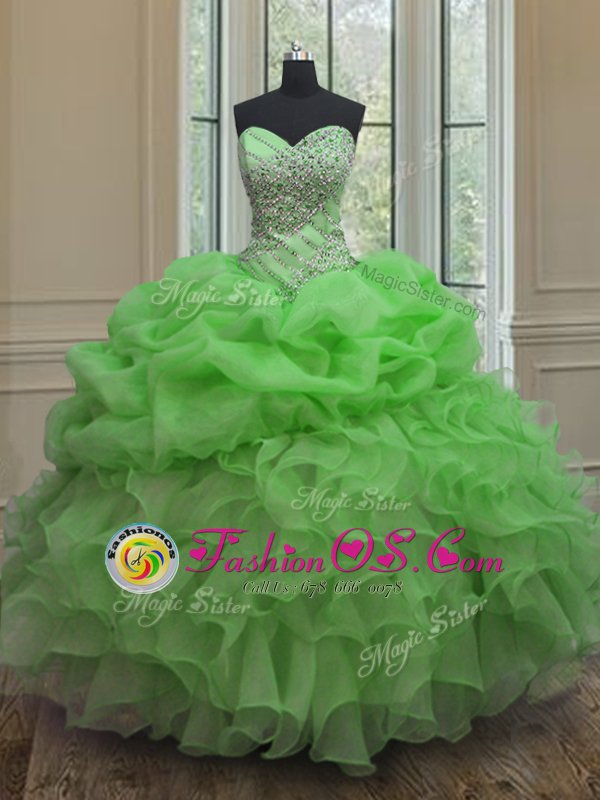 Edgy Sleeveless Lace Up Floor Length Beading and Ruffles and Pick Ups Quince Ball Gowns