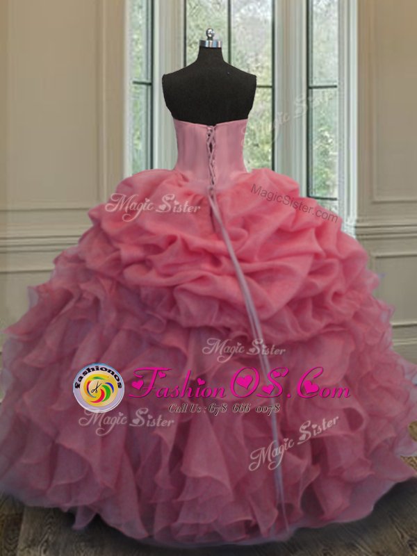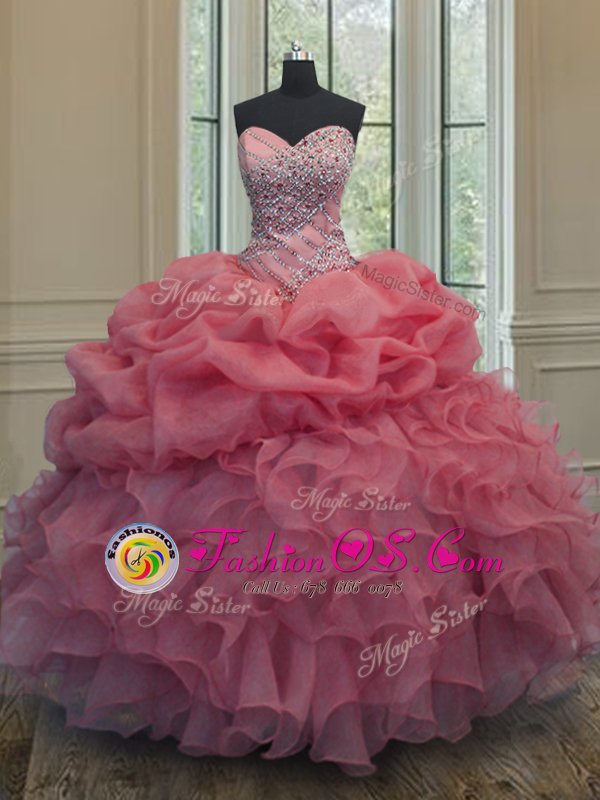 Organza Sleeveless Floor Length Quinceanera Gowns and Beading and Ruffles and Pick Ups