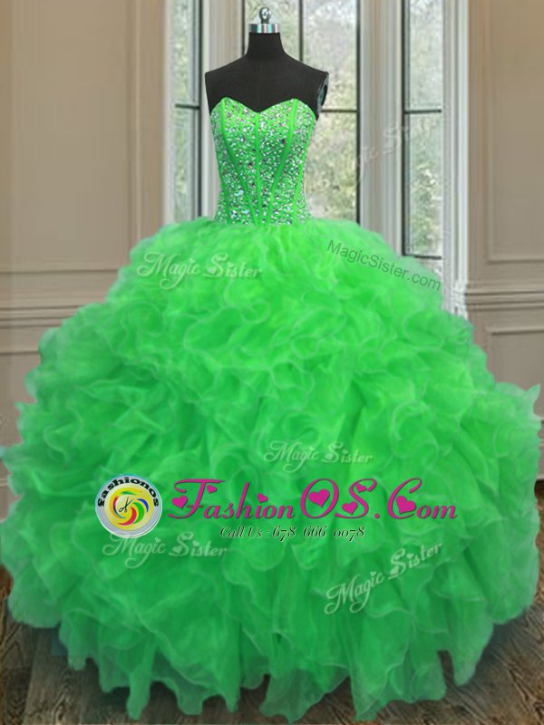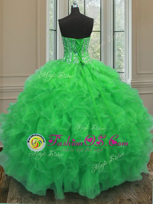 Eggplant Purple Ball Gowns Organza Sweetheart Sleeveless Beading and Ruffles Floor Length Lace Up 15th Birthday Dress