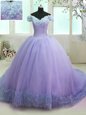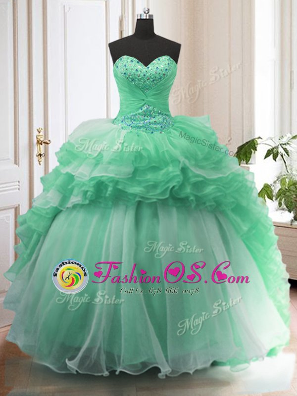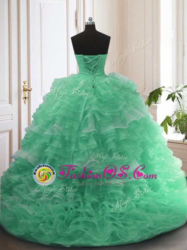 Dramatic Sleeveless With Train Beading Lace Up Quinceanera Gown with Apple Green Sweep Train