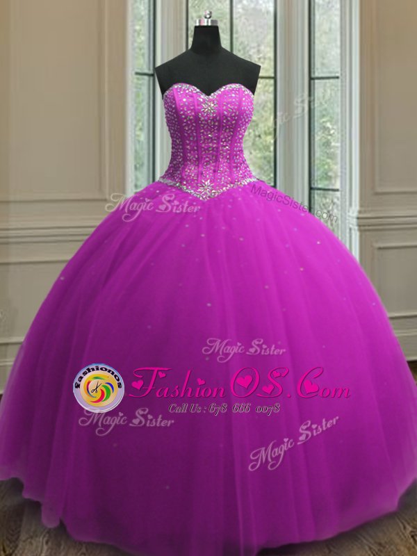 Designer Beading and Sequins Sweet 16 Dress Purple Lace Up Sleeveless Floor Length