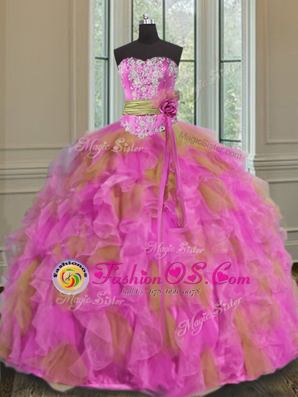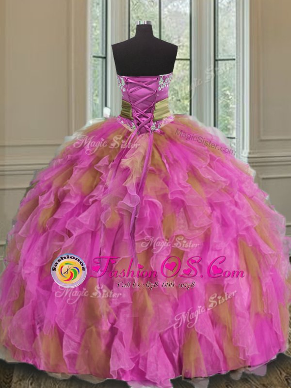 Multi-color Sleeveless Organza Lace Up 15 Quinceanera Dress for Military Ball and Sweet 16 and Quinceanera