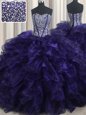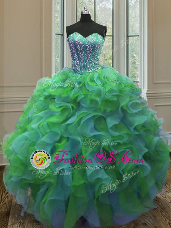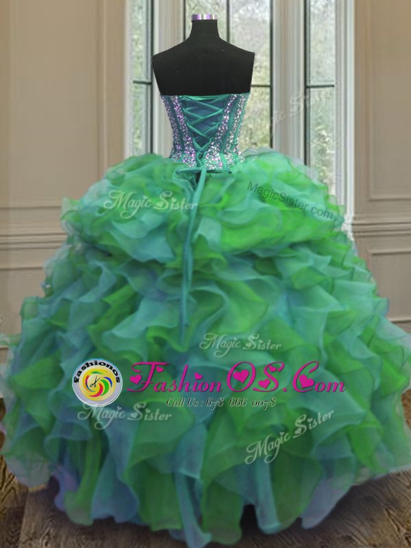 High End Multi-color Organza Lace Up Quinceanera Gowns Sleeveless Floor Length Beading and Ruffles