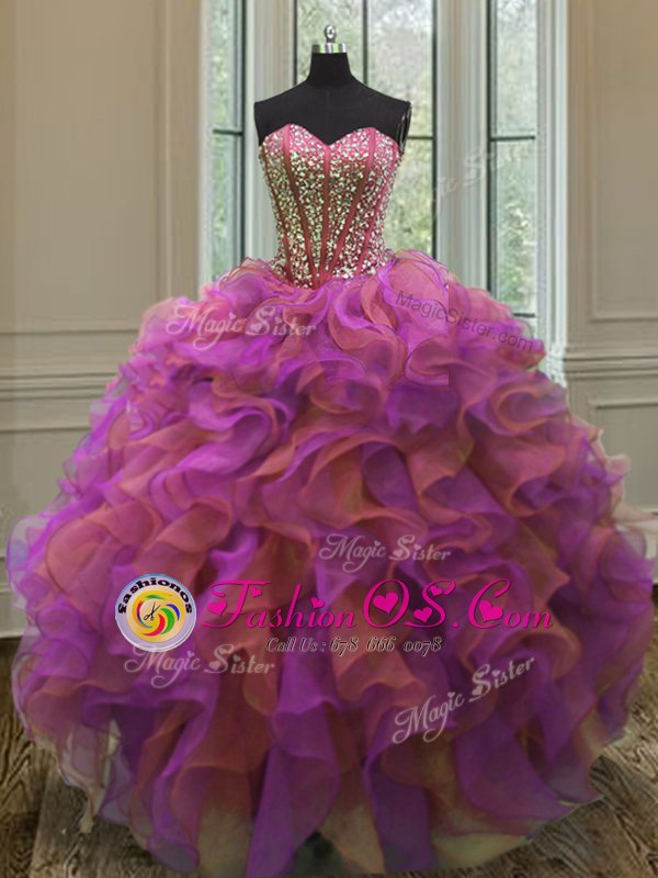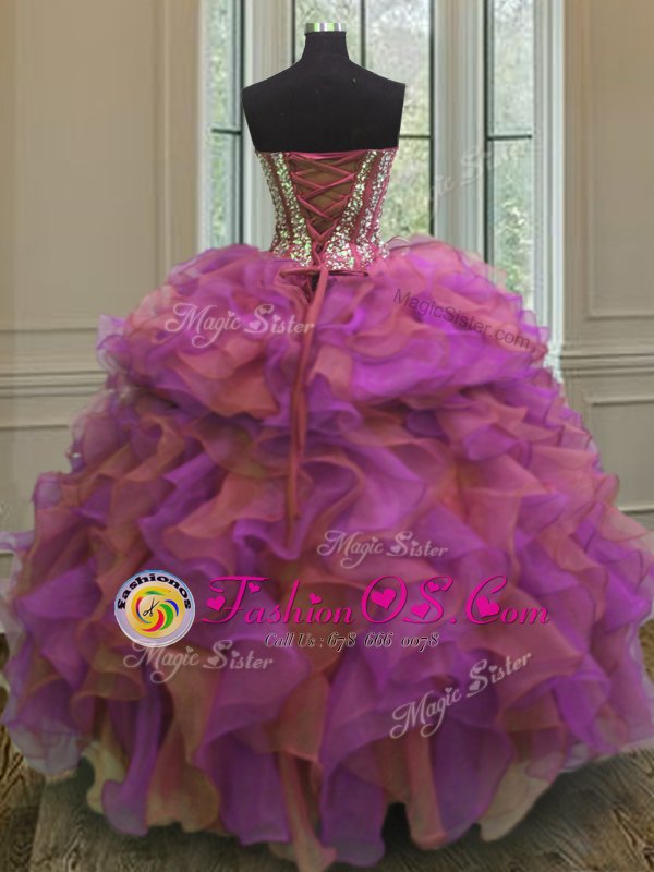 Multi-color Ball Gowns Beading and Ruffles Quinceanera Gowns Lace Up Organza Sleeveless Floor Length