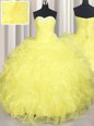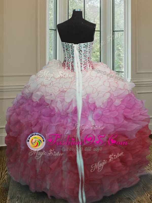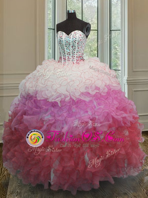 Sweetheart Sleeveless Quinceanera Dresses Floor Length Beading and Ruffles and Sashes|ribbons Multi-color Organza
