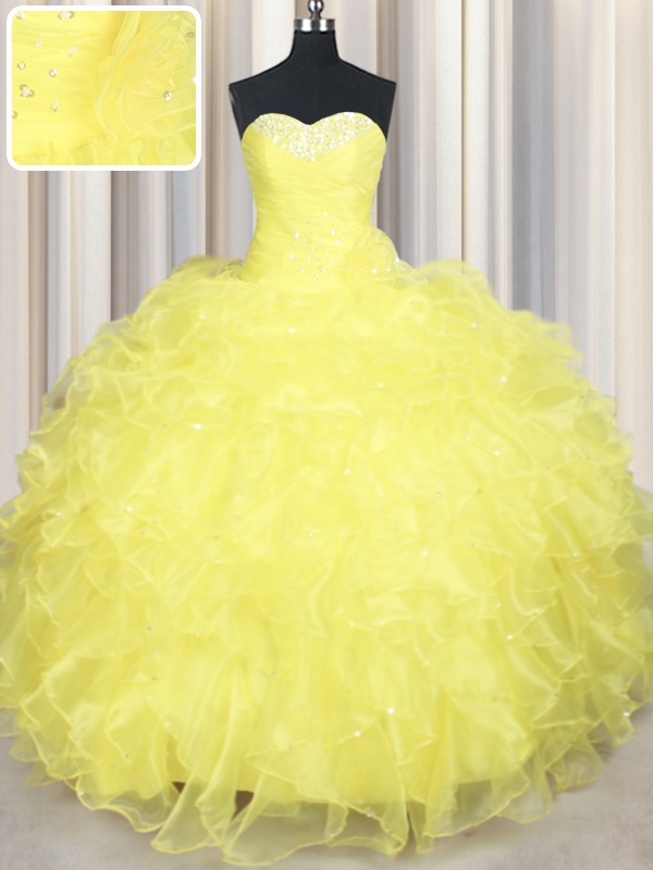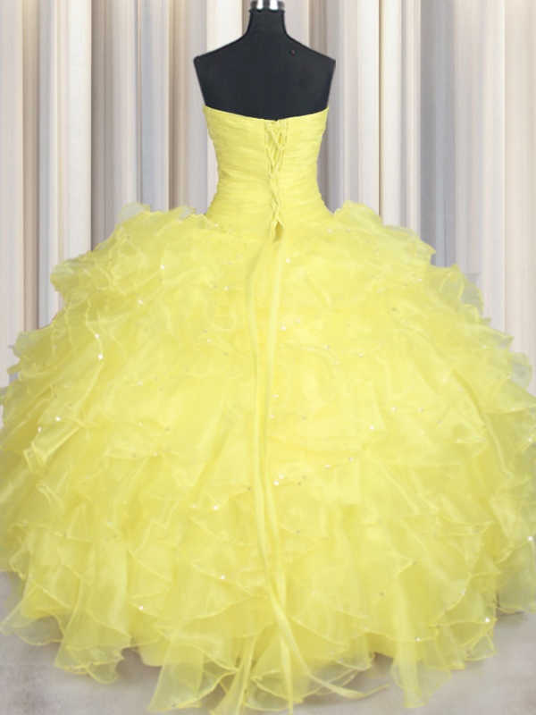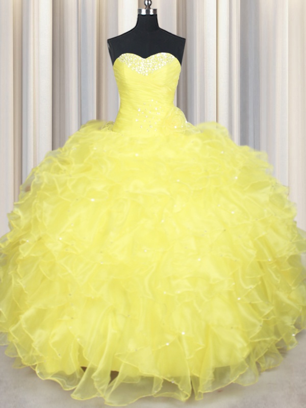 Shining Ball Gowns Sweet 16 Dress Yellow Sweetheart Organza Sleeveless Floor Length Lace Up