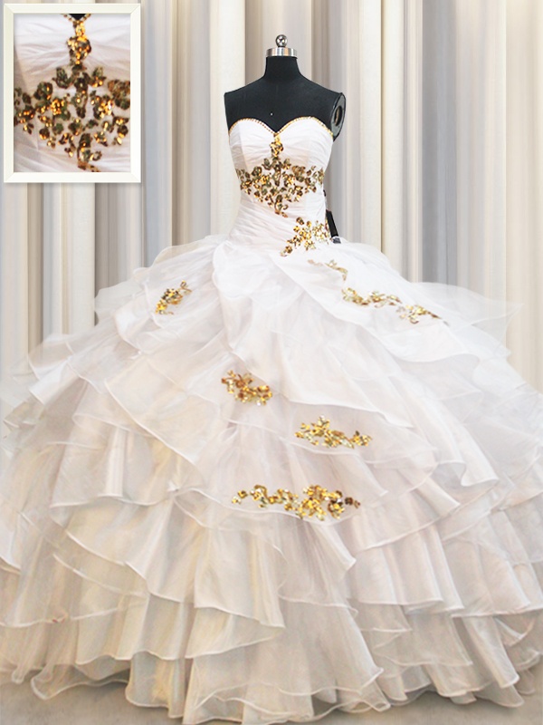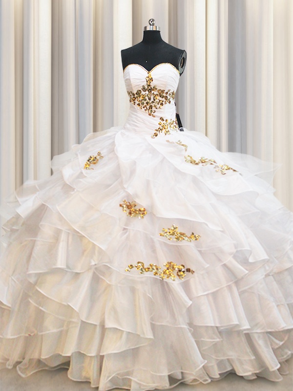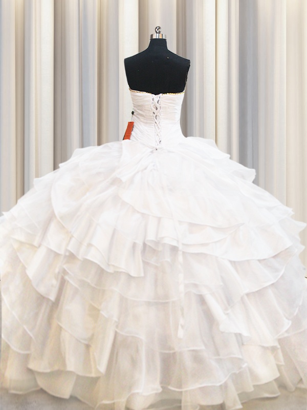 Sleeveless Floor Length Beading and Ruffled Layers Lace Up Sweet 16 Dress with White