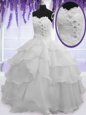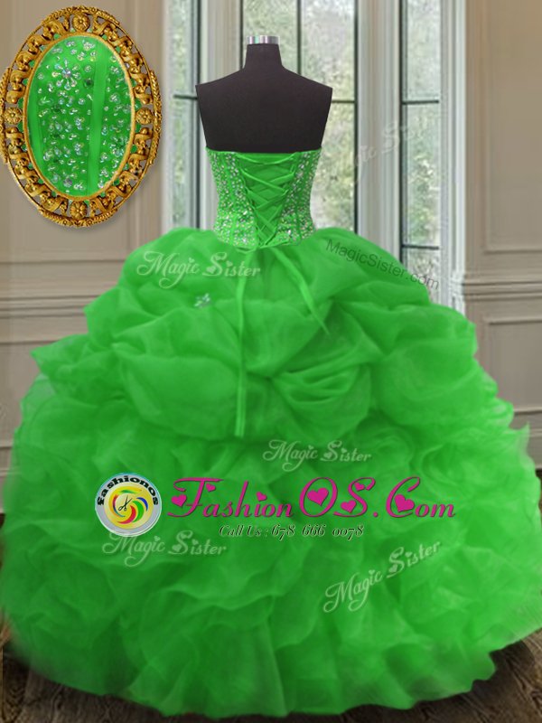 High Quality Sleeveless Organza Floor Length Lace Up 15th Birthday Dress in Orange Red for with Sequins